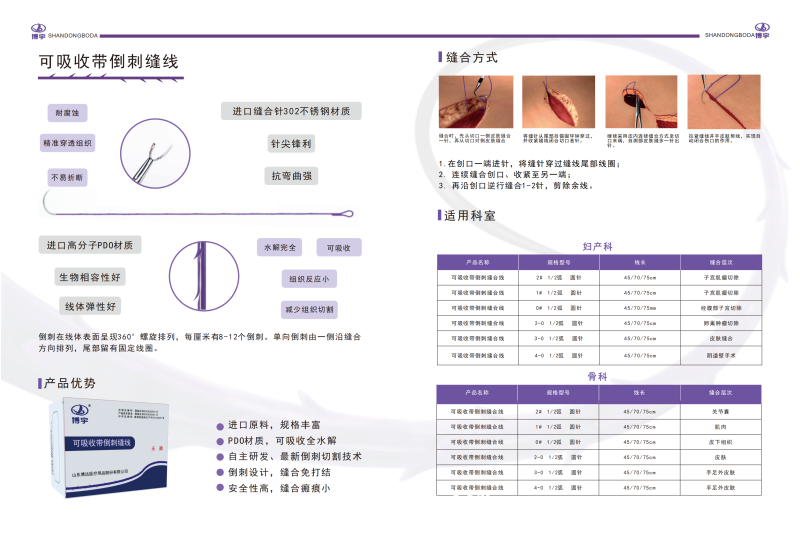 可吸收帶倒刺縫線產(chǎn)品說明: