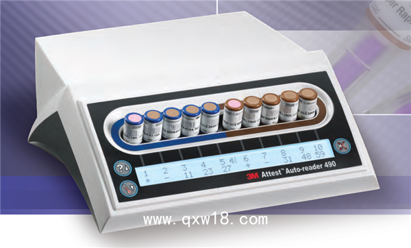 3M Attest Auto-reader490還被設(shè)計為允許對用于蒸汽滅菌的3M Attest 快速判讀式生物指示劑(目錄編號1491和1492V)進一步培養(yǎng),以便分別在24小時和48小時內(nèi)獲得結(jié)果為陰性的可視PH顏色變化,此進一步培養(yǎng)是可選的,并不計劃進行常規(guī)應(yīng)用。陽性熒光計數(shù)或可視PH顏色變化表示蒸汽滅菌程序失敗。但是由于熒光結(jié)果的高敏感性,在記錄了熒光結(jié)果后再繼續(xù)培養(yǎng)處理過的3M Attest快速判讀式生物指示劑就沒有好處了,其他生物指示劑(BI)與該設(shè)備不能兼容,無法進行使用。該裝置被設(shè)計為僅與3M隨付的電源模塊和雙太網(wǎng)電纜連用。