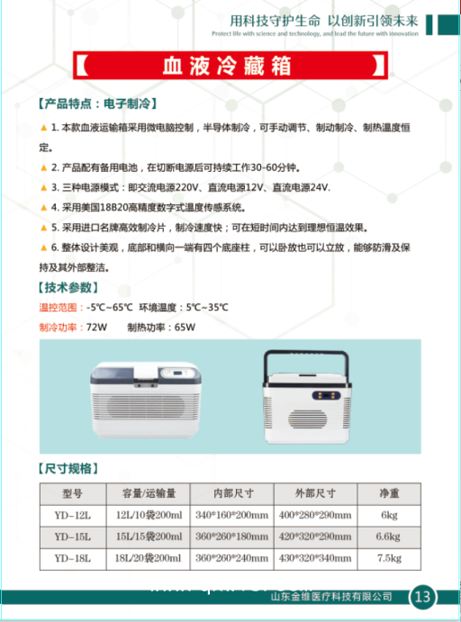 金維血液冷藏箱產品說明: