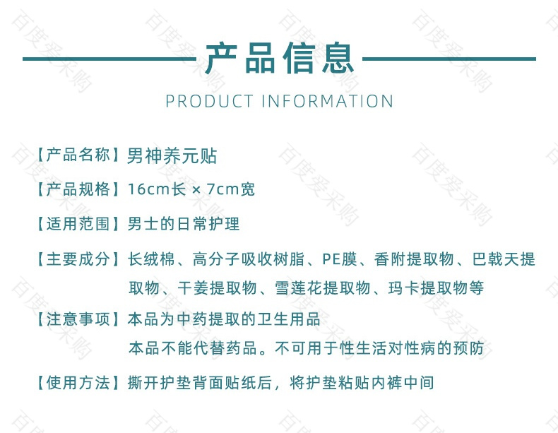 雪蓮貼男士護墊 男士衛(wèi)生巾正元貼固陽貼 雪蓮潛力貼私密貼養(yǎng)元貼代工產(chǎn)品說明: