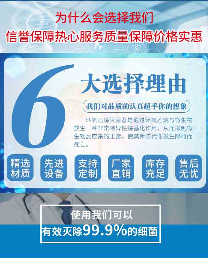 ?HTY?系列環(huán)氧乙烷滅菌箱,是我公司最新研制生產(chǎn)的電?腦控制全自動滅菌設(shè)備,技術(shù)水平、制造工藝在國內(nèi)居領(lǐng)先?地位,該產(chǎn)品是由微電腦控制系統(tǒng)、真空滅菌室系統(tǒng)、恒溫?系統(tǒng)、殘氣處理系統(tǒng)構(gòu)成。使用時(shí)只需按動兩次運(yùn)行鍵就可?實(shí)現(xiàn)自動加溫、抽真空、汽化、滅菌、排殘等復(fù)雜工序,非?常方便安全,滅菌幾乎達(dá) 100%。同時(shí),該設(shè)備所使用的環(huán)氧?乙烷混合氣體具有*阻燃、*防爆、*穿透力強(qiáng)、*高效廣譜滅?菌、*滅菌時(shí)間短、*無腐蝕、*無殘毒、*不污染環(huán)境等特點(diǎn)。?本產(chǎn)品對畏濕、畏熱物品的滅菌消毒有獨(dú)特的優(yōu)越性。目前,?廣泛應(yīng)用于醫(yī)療衛(wèi)生、工業(yè)、外貿(mào)、商業(yè)、銀行、考古、考?古檔案管理及文物管理領(lǐng)域。