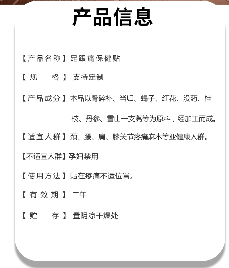 腳底腳背足跟痛穴位保健貼 草本足底骨刺腳后跟中藥貼廠家批發(fā)定制產(chǎn)品說明: