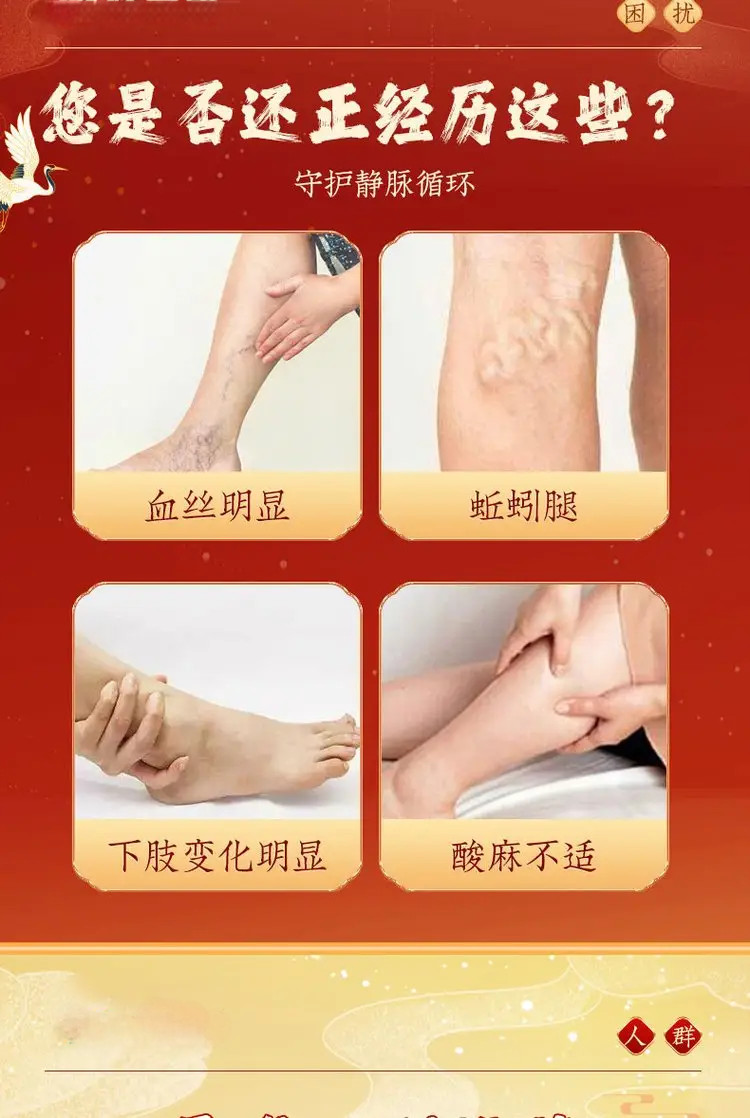 膏藥的溫和透皮滲透方式,可以直接作用于癥狀部位,促進局部血液循環(huán),減輕血管壓力,促進靜脈瓣膜功能恢復,緩解蚯蚓腿、青筋凸起的癥狀。,通過減少炎癥反應(yīng),緩解腿部腫脹及酸痛,改善患者的日?;顒幽芰Α?/p>