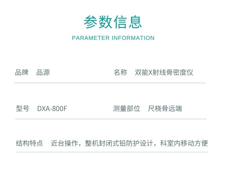 品源 雙能X射線(xiàn)骨密度儀 DXA-800F 雙能X線(xiàn)骨密度儀產(chǎn)品說(shuō)明: