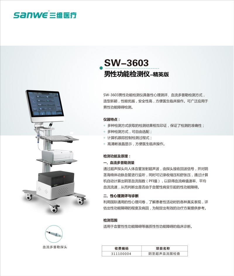 適用于男性性功能方面的,人體血管血液流速的檢查。