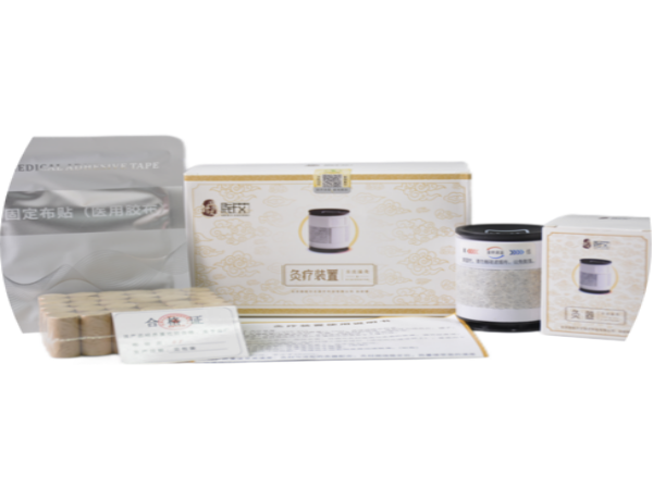 灸療裝置由灸材、灸器、固定材料組成。選配件為隔熱片、鑷子。固定材料為綁帶、醫(yī)用膠布或支架,灸材由艾絨制成,不含藥理作用。