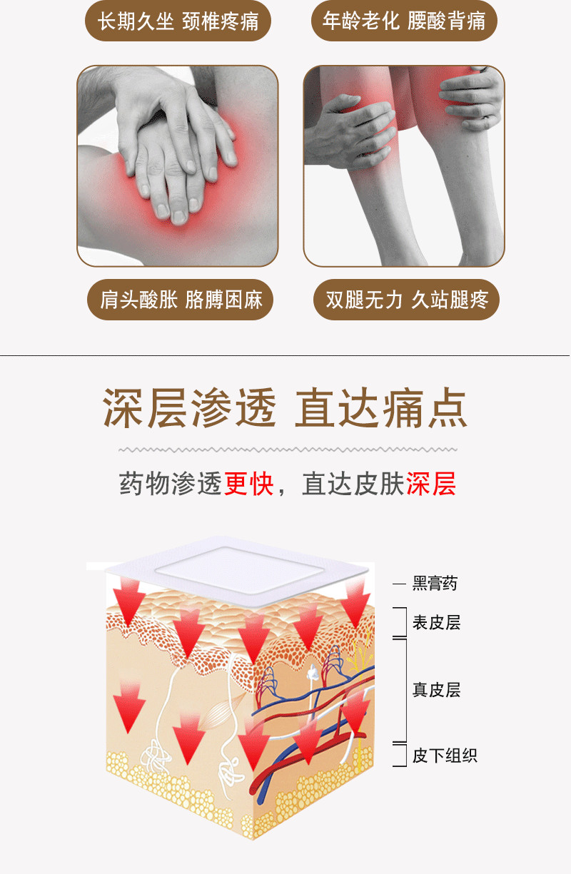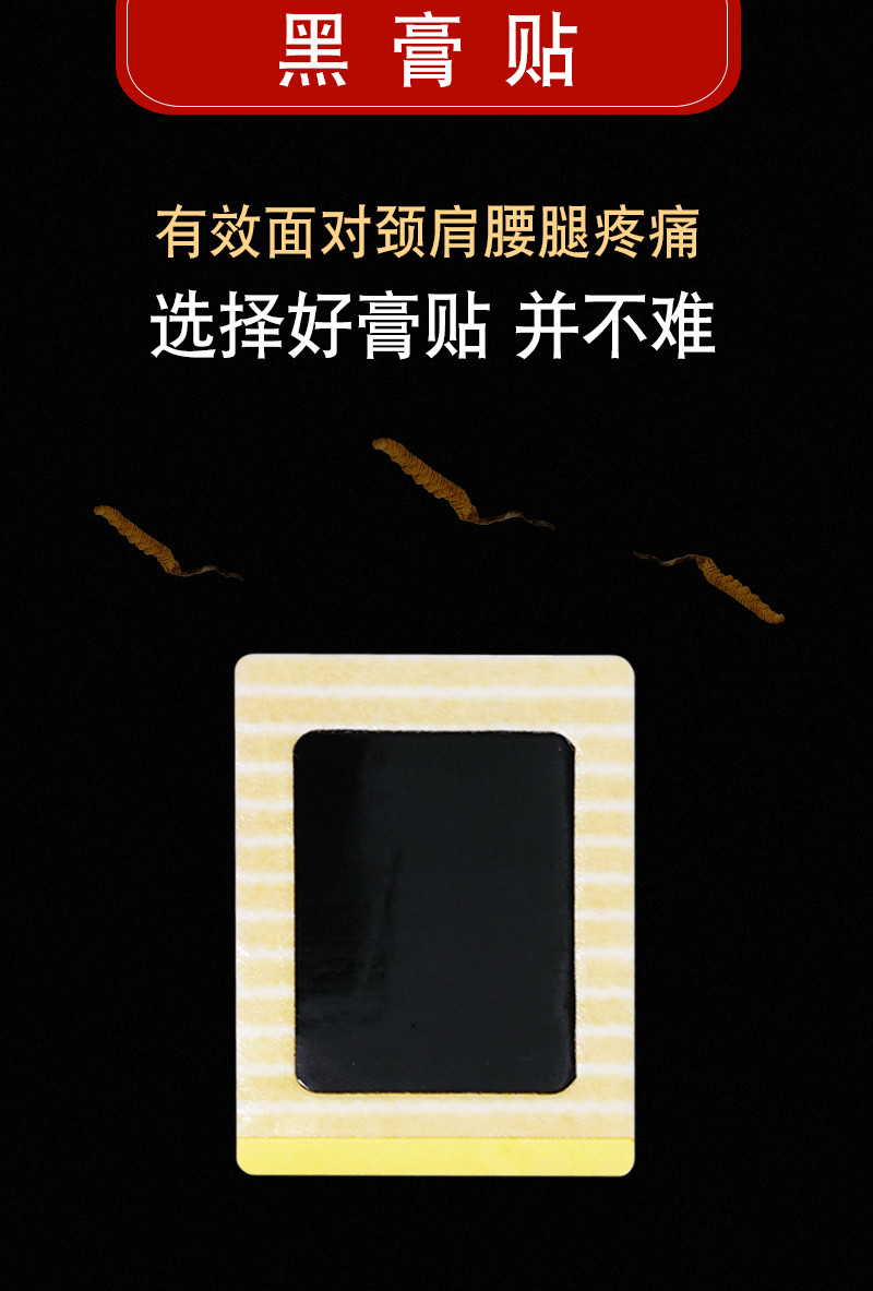 無(wú)紡布黑膏保健貼肢體關(guān)節(jié)疼痛腰椎貼膏藥老黑膏產(chǎn)品說(shuō)明: