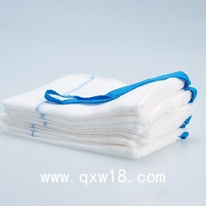 Ⅱ型:由醫(yī)用脫脂紗布或夾有X射線可探測(cè)組件的醫(yī)用脫脂紗布折成長(zhǎng)方形或方形,無(wú)切邊外露,回周縫合,角部可縫制一根墊帶。