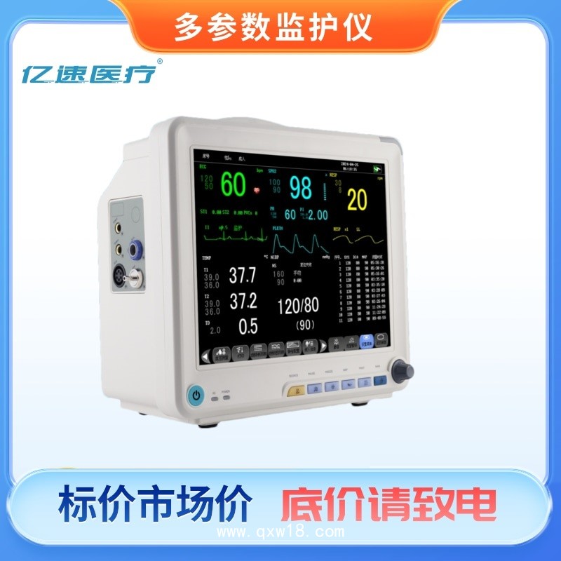 供患者的心電、呼吸、無創(chuàng)血壓、脈搏、心率、血氧飽和度、體溫和呼氣末二氧化碳監(jiān)測用。