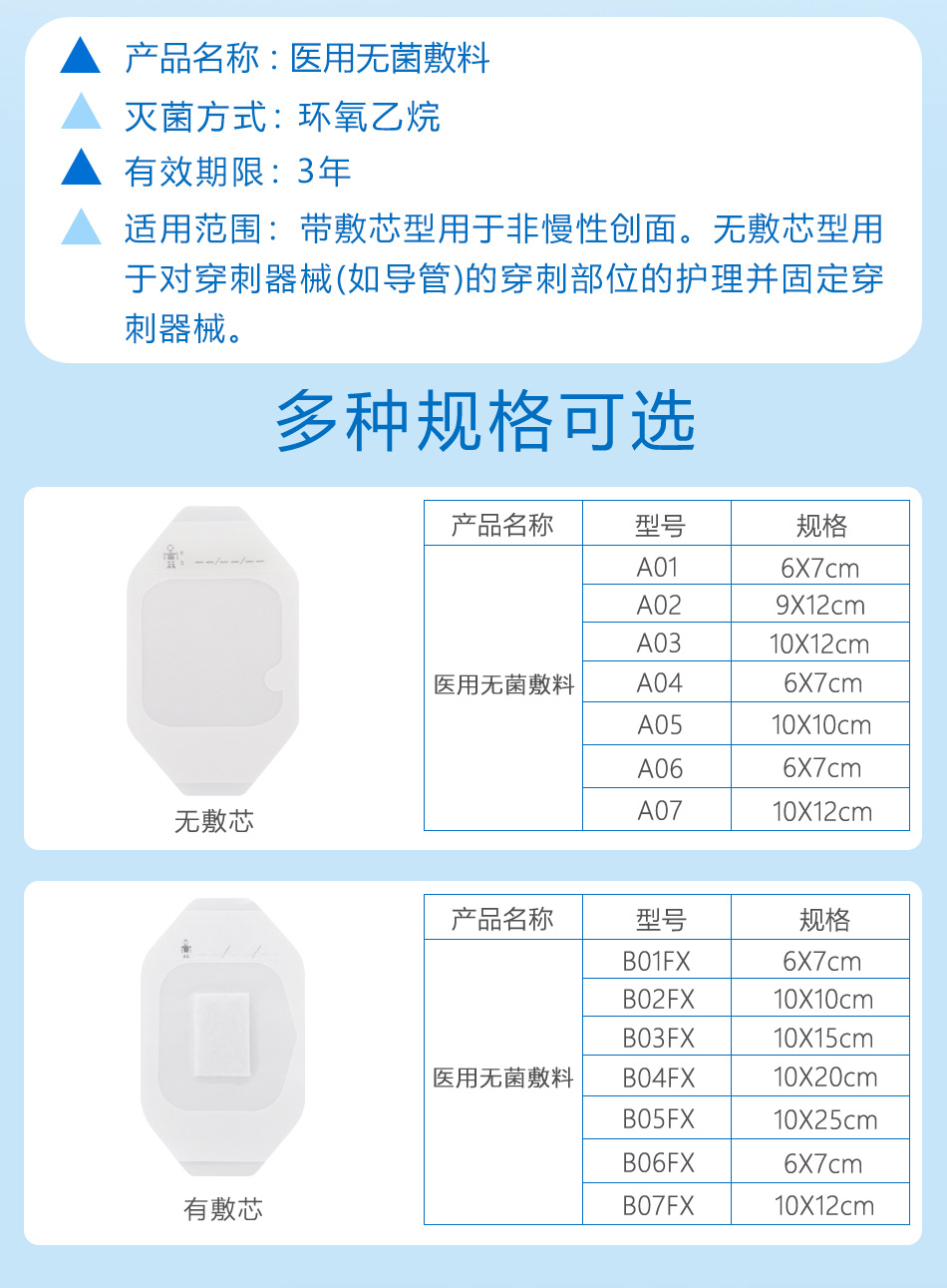 帶敷芯型用于非慢性創(chuàng)面 如淺表性創(chuàng)面、手術(shù)后縫合創(chuàng)面、機(jī)械創(chuàng)傷、小創(chuàng)口、擦傷、切割傷創(chuàng)面、穿刺器械的穿刺部位、I度或淺II度的燒燙傷創(chuàng)面、嬰兒肚臍口創(chuàng)口、激光/光子/果酸換膚/微整形術(shù)后創(chuàng)面)的護(hù)理,為創(chuàng)面愈合提供微環(huán)境。無敷芯型用于對穿刺器械(如導(dǎo)管)的穿刺部位的護(hù)理并固定穿刺器械。
