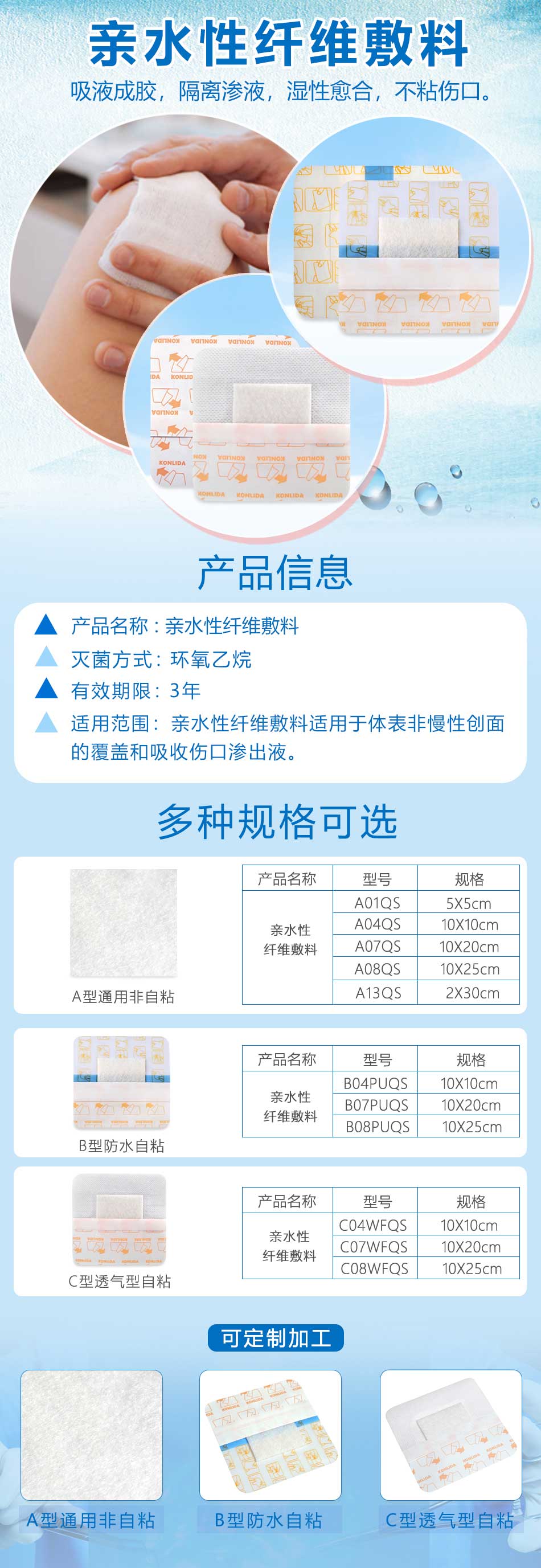 用于體表非慢性創(chuàng)面的覆蓋和吸收傷口滲出液。
