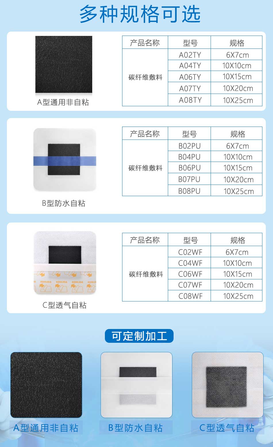親水性纖維敷料根據(jù)結(jié)構(gòu)不同分為通用型、自粘A型、自粘B型。通用型由羧甲基纖維素鈉纖維無紡布構(gòu)成;自粘A型由羧甲基纖維素鈉纖維無紡布和聚氨酯復(fù)合膜、離型紙構(gòu)成;自粘B型由羧甲基纖維素鈉纖維無紡布和涂有醫(yī)用壓敏膠的無紡布、離型紙構(gòu)成。該產(chǎn)品以無菌狀態(tài)提供,經(jīng)環(huán)氧乙烷滅菌,一次性使用。