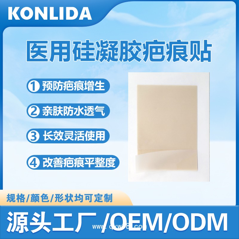醫(yī)用硅凝膠疤痕敷料由保護(hù)層、硅凝膠層、離型膜組成;按產(chǎn)品厚度劃分為通用型和薄型。該產(chǎn)品以無菌狀態(tài)提供,經(jīng)環(huán)氧乙烷滅菌。