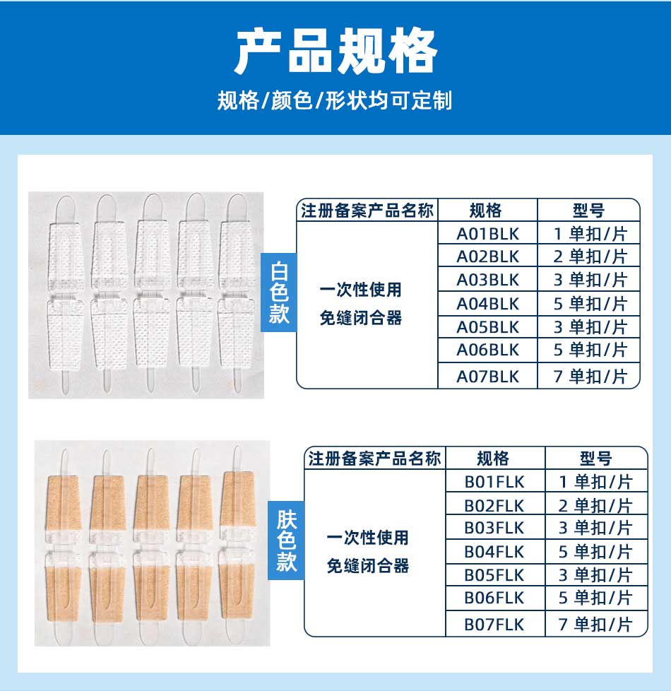 用于體表各部位傷口的閉合。