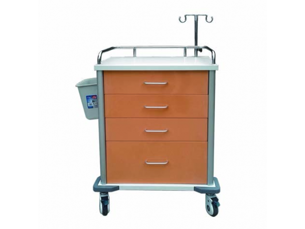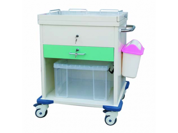 產(chǎn)品說明:尺寸:700*450*940-1020配置:三小抽一大抽,一只污物桶,后背帶輸液桿,搶救板。