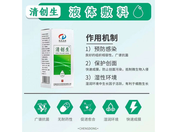 產(chǎn)品說明:對暴露傷口直接噴酒適量,深部傷口用清創(chuàng)生液體敷料噴灑在消過毒的棉花條上嵌敷,若有滲液,將包扎面噴濕噴透的無茵敷料覆蓋包