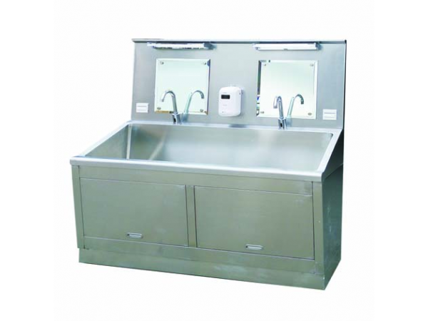 產品說明:品名:兩位手術室消毒洗手池規(guī)格:1600*630*1900配置:配海爾40L電熱水器,感應龍頭 XDC-S190系列手術室消毒洗手池,采用進口優(yōu)質304不銹鋼板制造,國際標...