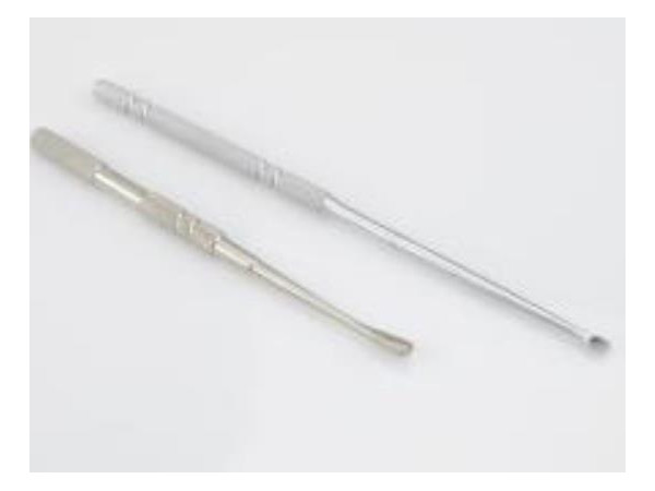 產(chǎn)品說明:刮匙,鋒利,尖,橢圓形,1.2mm*2.0mm,彎角80°,長度21.5cm。