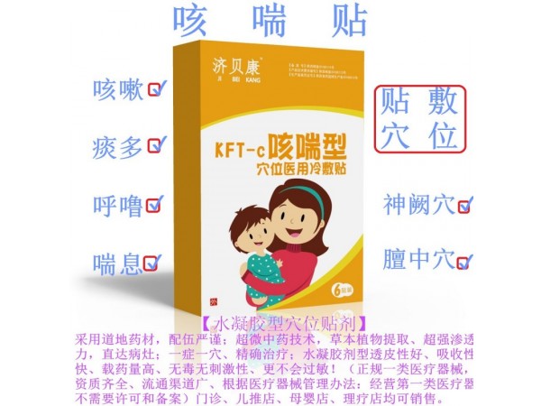 產(chǎn)品說明:咳喘貼以中醫(yī)的穴位敷貼為依據(jù),采用具有止咳平喘、宣肺祛痰之功的純中草藥成分,敷貼在特定的穴位上,通過藥物對穴位刺激,可以
