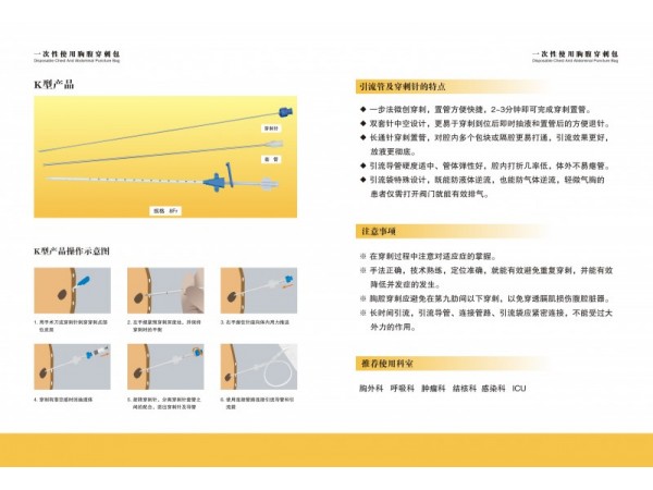 產(chǎn)品說(shuō)明:一、呼吸系統(tǒng):肋膜積液引流,肺積液引流,胸腔積液引流,胸腔注藥,胸腔沖洗,胸腔抽氣,血胸引流,膿胸引流。二、腸胃系統(tǒng):腹