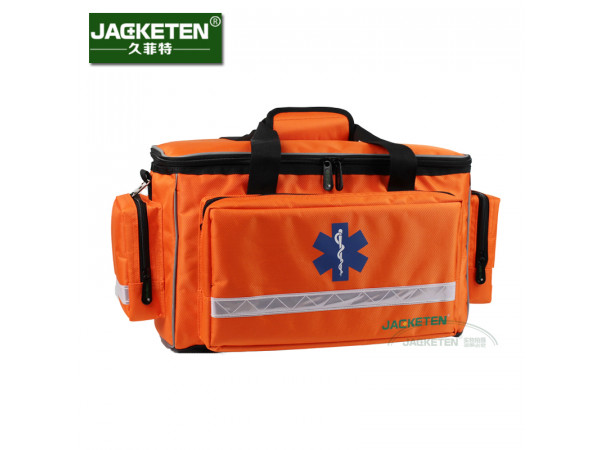產(chǎn)品說(shuō)明:久菲特急救包JKT-015包體顏色為橙色,采用環(huán)保1680D雙股牛津面料,具備防濺水防塵抗潮的功能;攜帶方便,可單肩可手提,包體內(nèi)部