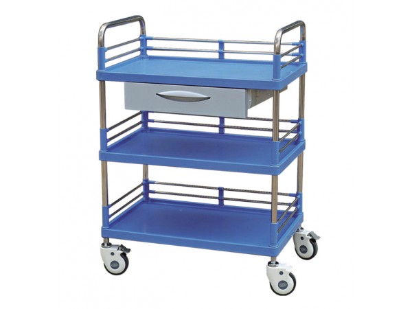 產(chǎn)品說明:山東眾佳F22C ABS三層器械車兩抽 810*500*880ABS 工程塑料臺面,主體結(jié)構(gòu)為不銹鋼,高檔靜音腳輪??膳渲茫簣A形垃圾桶、不銹鋼洗