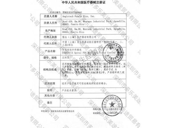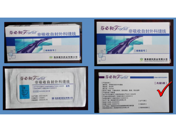 產(chǎn)品說(shuō)明:產(chǎn)品由縫線和縫針兩部分組成,縫線的材料為聚丙烯,縫針的材料為不銹鋼;縫線表面有三維的微小均勻分布的倒勾,倒勾呈螺旋狀向兩