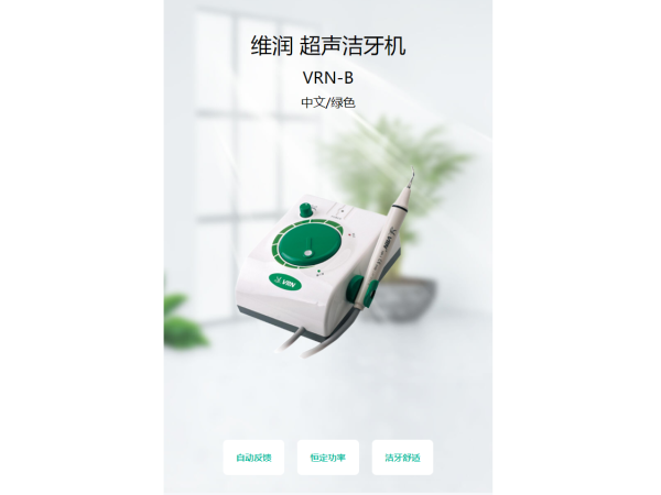 產(chǎn)品說明:維潤(rùn)超聲牙周治療儀VRN-Q5是一款專業(yè)的牙周治療設(shè)備,具有以下主要功能:1. 超聲潔治功能:該設(shè)備采用超聲波技術(shù),能夠有效清除