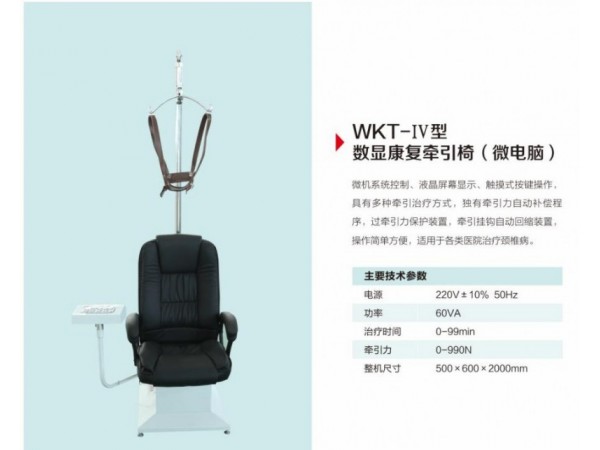 產(chǎn)品說(shuō)明:微機(jī)系統(tǒng)控制、液晶屏幕顯示、觸摸式按鍵操作,具有多種牽引治療方式,獨(dú)有牽引力自動(dòng)補(bǔ)償程序,過(guò)牽引力保護(hù)裝置,牽引掛鉤自動(dòng)