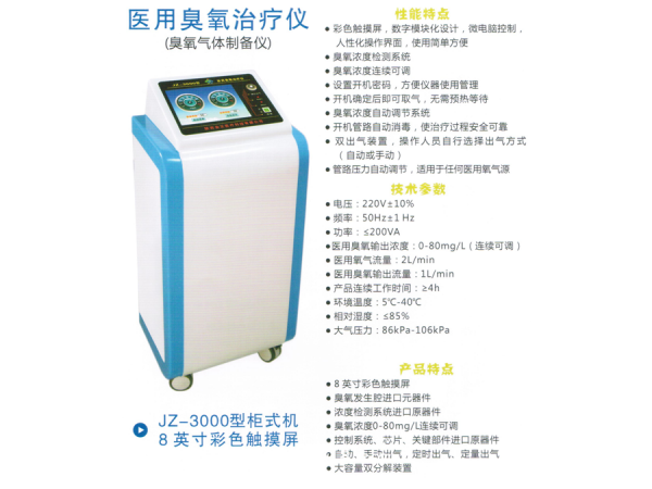 產(chǎn)品說(shuō)明:醫(yī)用臭氧治療儀產(chǎn)品說(shuō)明:技術(shù)特點(diǎn): 1.采用電腦觸摸屏技術(shù),具備友好的人機(jī)界面,各種操作用手輕輕一點(diǎn)即可實(shí)現(xiàn)。 2.通過(guò)顯示屏