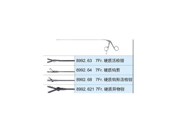 產(chǎn)品說(shuō)明:7Fr硬質(zhì)活檢鉗8992.637Fr7Fr硬質(zhì)鉤剪8992.647Fr7Fr硬質(zhì)鉤形活檢鉗8992.687Fr7Fr硬質(zhì)異物鉗8992.6217Fr