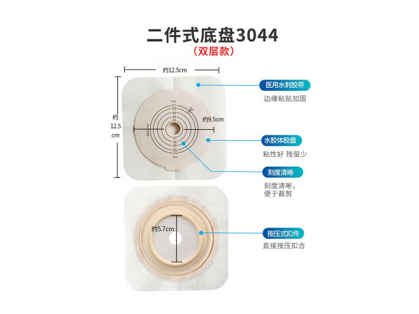 產(chǎn)品說明:為回腸、結(jié)腸、直腸或尿道造口的護(hù)理器械。產(chǎn)品接觸完好皮膚和腸內(nèi)腔。非無菌提供。用于造口排泄物的收集。雙層膠、10-40mm剪孔