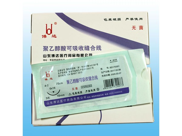產(chǎn)品說明:博達(dá)聚乙醇酸可吸收縫合線,是一種可吸收外科縫合線,新型的縫合材料,分帶針與不帶針兩種,適用于外科手術(shù)對(duì)人體軟組織的縫合。