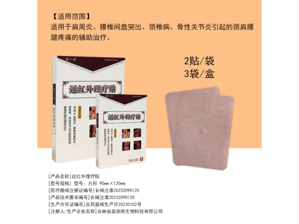 產(chǎn)品說(shuō)明:【產(chǎn)品名稱】遠(yuǎn)紅外理療貼 【產(chǎn)品性能】該產(chǎn)品由含有遠(yuǎn)紅外陶瓷粉、丙烯酸壓敏膠、無(wú)紡布硅油紙制成?! 具m用范圍】適用于