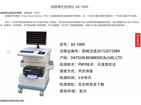 產(chǎn)品說明:AE1000A動脈硬化檢測儀是一款無創(chuàng)血流動力學檢測設備,用于人體動脈血管結(jié)構(gòu)和功能病變的早期篩查操作便捷,自動生成報告外形尺