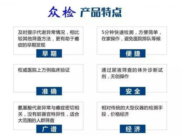 產(chǎn)品說明:【眾檢】項(xiàng)目面向全國招商創(chuàng)業(yè)首選項(xiàng)目:癌癥真正的可怕之處就在于前期無任何征兆,一旦有征兆基本都是中晚期,難以治愈。眾檢的