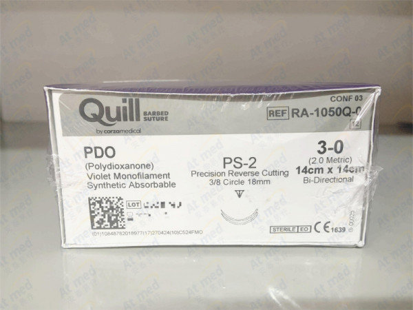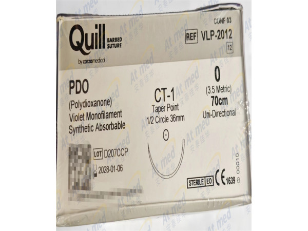 產(chǎn)品說明:采用帶倒刺的縫合材料制成,兩端或一端連有手術(shù)縫針。由于帶倒刺,故無需打結(jié)即可縫合組織??p合材料為染色(紫色)聚酯,即聚(p-
