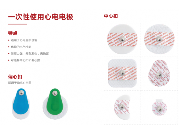 產(chǎn)品說(shuō)明:一次性心電圖電極特點(diǎn):適用于中、低頻醫(yī)療設(shè)備。優(yōu)良的電氣性能。附著力強(qiáng),無(wú)刺激性,無(wú)殘留。可提供中心型和偏心型。背襯材料
