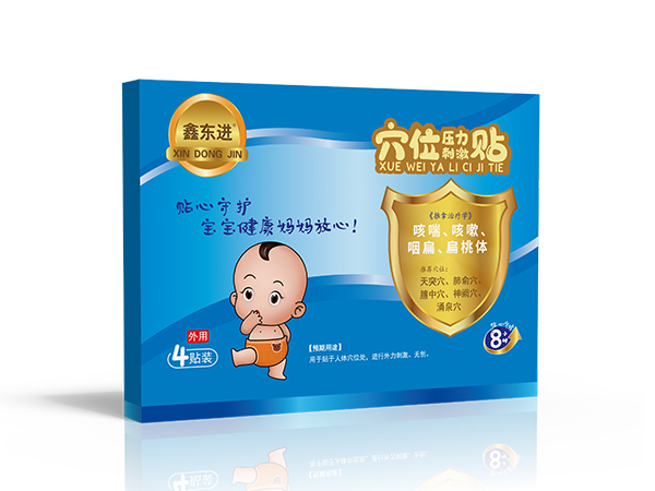 產(chǎn)品說(shuō)明:鑫東進(jìn) 小兒穴位貼咳嗽貼 穴位壓力刺激貼貼牌代加工專注穴位壓力刺激貼貼牌代加工,多年研發(fā)生產(chǎn)經(jīng)驗(yàn),各類穴位貼代加工貼牌定制
