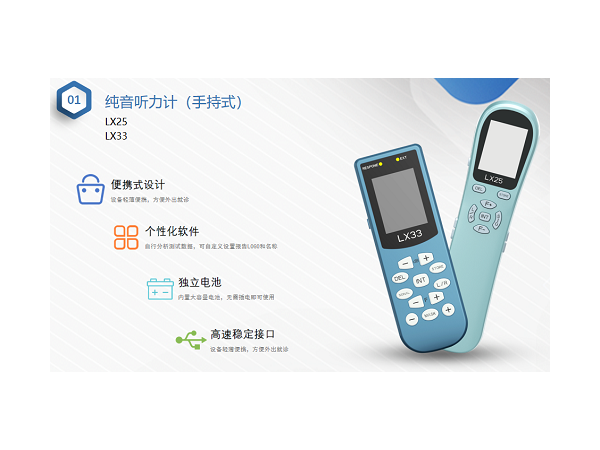 產(chǎn)品說明:鹿溪 生產(chǎn)的手持純音聽力計LX25 、LX33設(shè)備輕薄便攜,方便外出就診自行分析測試數(shù)據(jù),可自定義設(shè)置報告LOGO和名稱內(nèi)置大容量電池