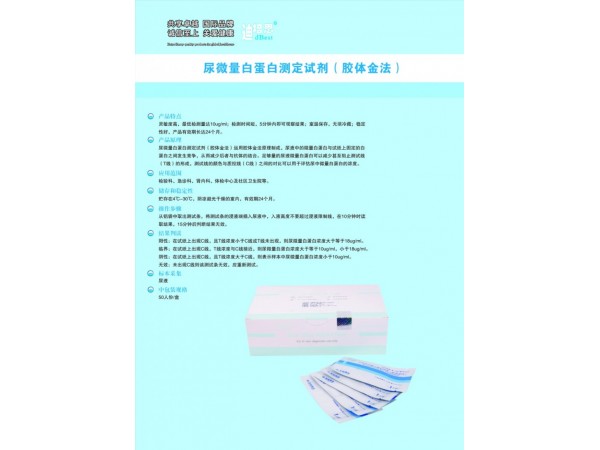 產(chǎn)品說明:檢測(cè)樣板:尿液包裝規(guī)格:1人份/袋,40人份/盒儲(chǔ)存條件:4-30℃,密封干燥